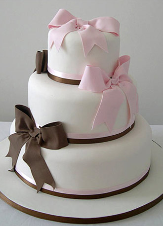 Chic and very elegant. This gorgeous wedding cake is decorated with beautiful pink and brown sugar ribbons.